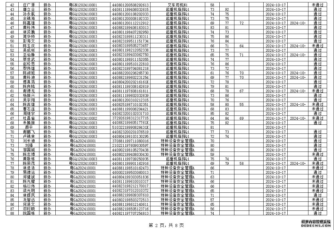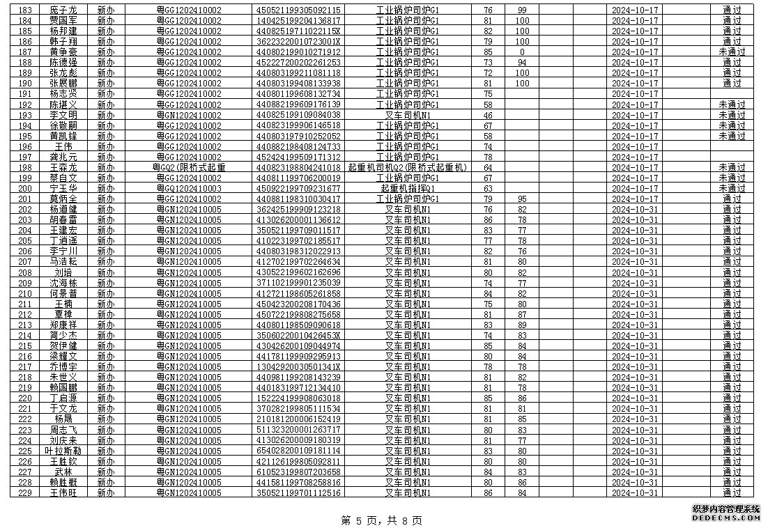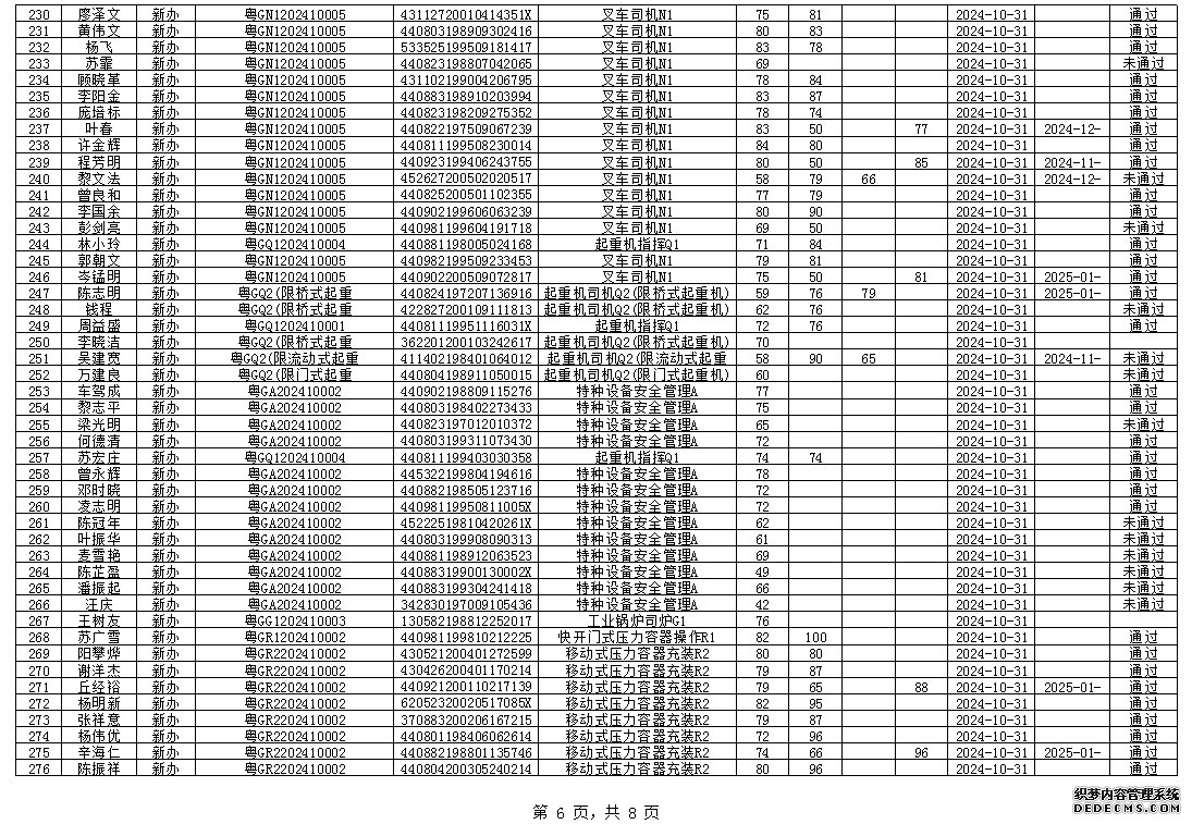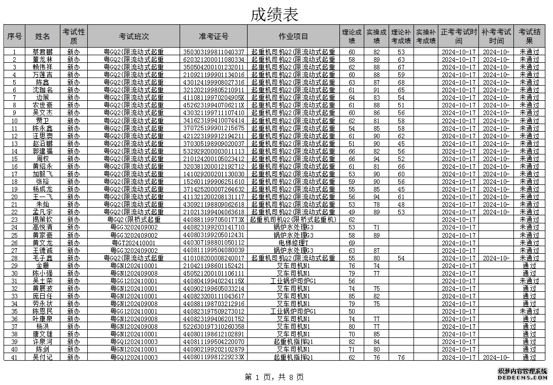 2024年10月特种设备作业人员考试成绩